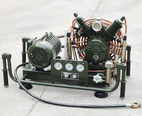 GS-206型高壓空氣壓縮機(jī)是一種小型高壓供氣設(shè)備,是經(jīng)過(guò)我司技術(shù)人員多年刻苦攻關(guān)設(shè)計(jì)定型的活塞式小型高壓空氣壓縮機(jī),一舉打破了國(guó)外產(chǎn)品壟斷的局面。具有體積小、重量輕、結(jié)構(gòu)緊湊、便于攜帶等優(yōu)點(diǎn)。GS-206型高壓空氣壓縮機(jī)的工作原理是將自然狀態(tài)下的空氣經(jīng)過(guò)四級(jí)的逐級(jí)壓縮,壓縮為20mpa-30mpa(兆帕)每平方厘米的壓力,(注:1mpa=10kg,即1兆帕=10公斤千克力),在壓縮的同時(shí),產(chǎn)品過(guò)濾系統(tǒng)將空氣中的水分和雜質(zhì)進(jìn)行過(guò)濾和剔除,提供出的空氣純凈安全,達(dá)到人體生命呼吸的標(biāo)準(zhǔn)。GS-206型高壓空氣壓縮機(jī)能夠充分滿足機(jī)械的高壓供氣要求,提供安全可靠的高壓供氣氣源。例如在機(jī)械的變速箱上配備高壓空氣壓縮機(jī)可以對(duì)氣動(dòng)系統(tǒng)進(jìn)行高壓補(bǔ)氣,解決電啟動(dòng)系統(tǒng)啟動(dòng)慢電能損耗的問(wèn)題。再如高壓空氣壓縮機(jī)可安裝在復(fù)進(jìn)機(jī)上可以對(duì)諸如自行火炮等作戰(zhàn)機(jī)械進(jìn)行高壓補(bǔ)氣,解決自動(dòng)送彈等人工所不能解決的高壓力問(wèn)題。